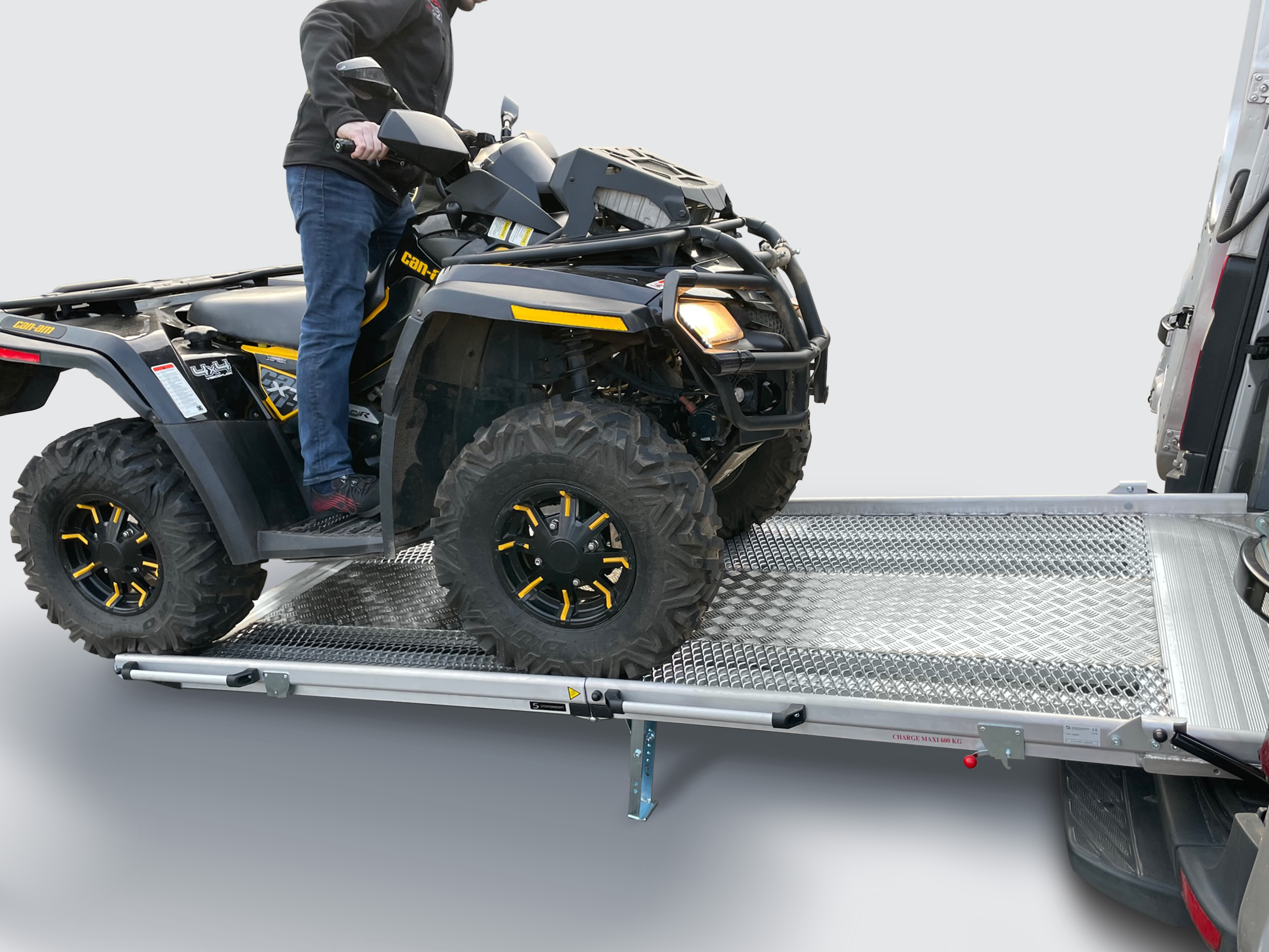 Serie PRO | Fest montierte Verladerampe für Motorrad, Quad, Hubwagen, Stechkarren, Werkzeugw. - Abmessung 2.800 x 1.220 mm, mittig faltbar